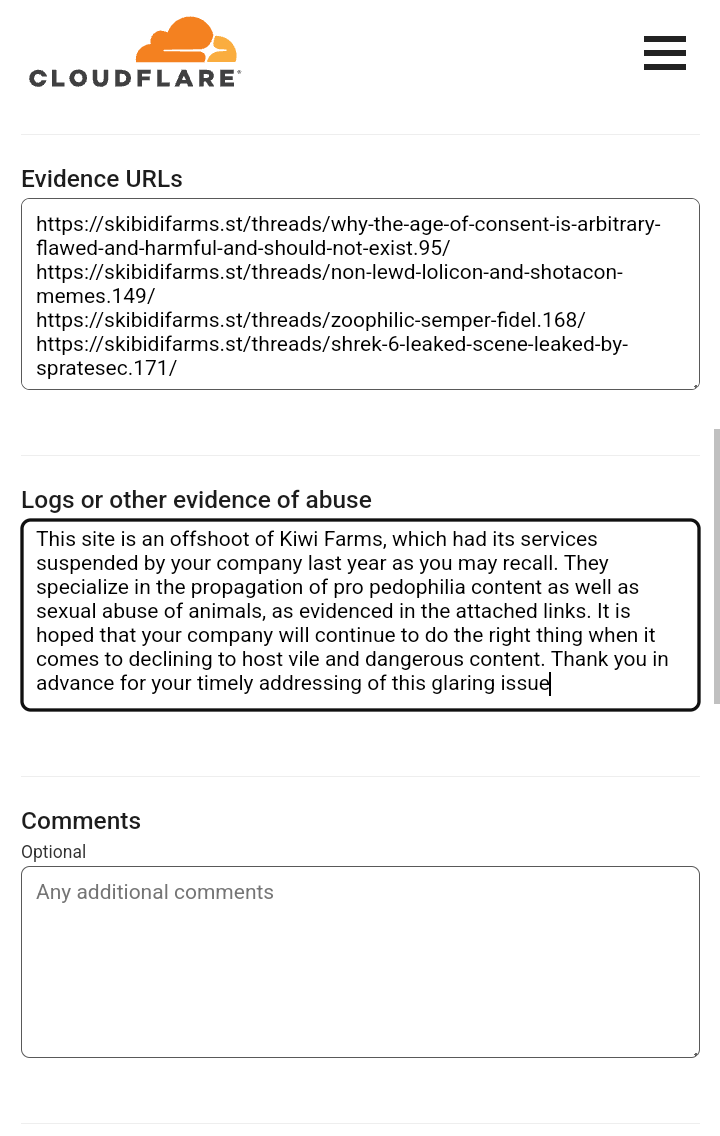 CringeI have a consensus — if you actually want this website to be shutdown, the first thing to do is to actually look for incriminating evidence and send it to the FBI because of the fact that it's a US based website. Calling for raids or mass reports for shit like this is going to have them be taken less seriously in the future. In the meantime, it's better off to not respond to these attention starving clowns.