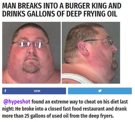 Clearly not me, why the fuck would i ever drink used oil from deep fryers, thats disgusting.i knew this article looked familiar...
