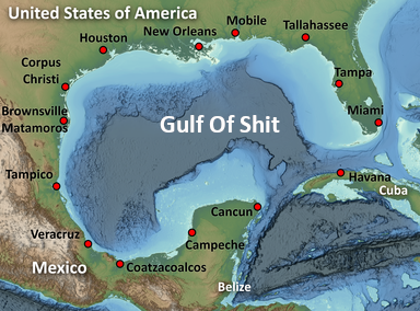 In this picture, the Gulf of Shit has an anus that is pointed directly at Cuba.