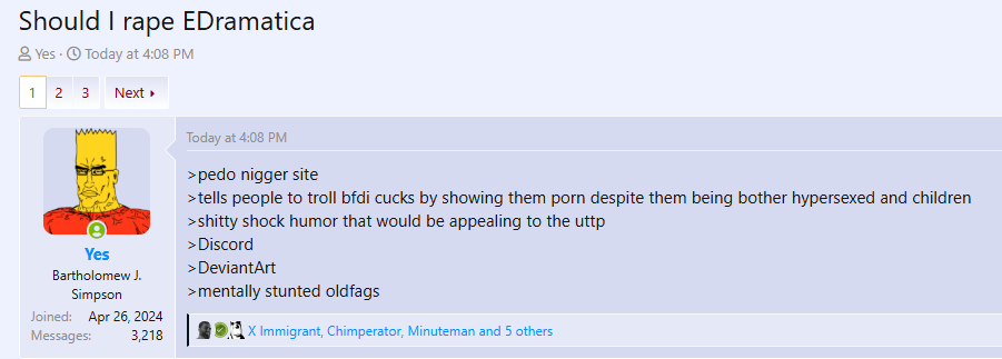 "pedo nigger site" Never ask a woman her age, a man his salary and a soyteen why all his admins and namefags have foodists, lolis and 764 larpers as friends.